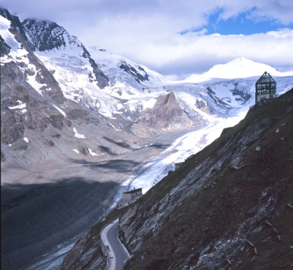 正面にグロースグロックナーGroβglockner3798m右手には、パステルツェ氷河Pasterze Gletscherが流れ出ています。