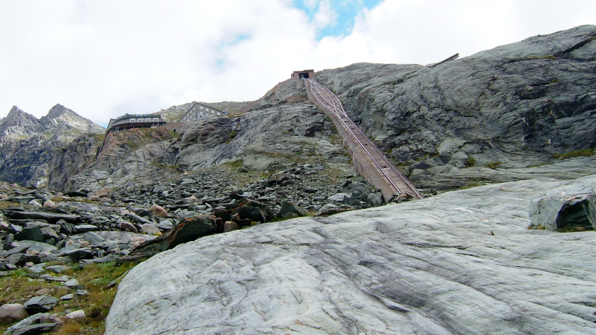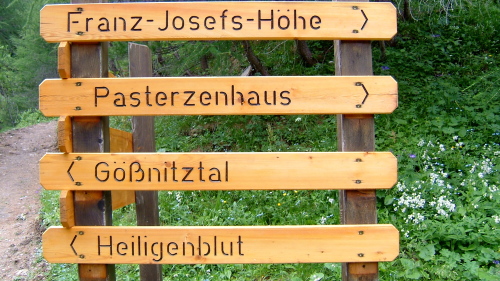 展望台の建物の横よりホフマンスヒュッテHofmannshutte(2444m)までの登山道が有りますヒュッテまでは2.5kmです。殆ど平坦な道です。パステルツェ氷河を間じかに、グロースグロックナーを真正面に見ながらハイキング気分で歩けますのでお勧めコースです。