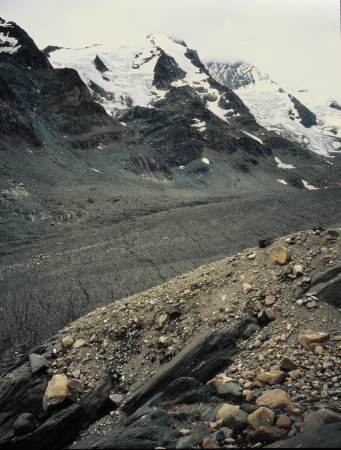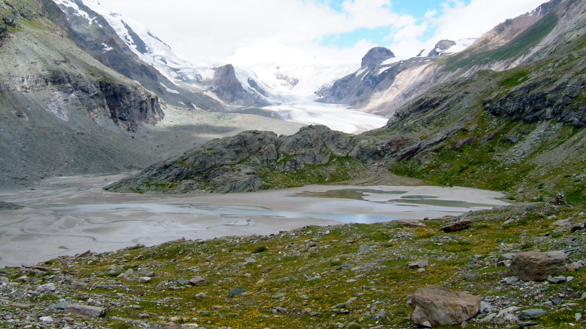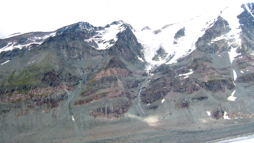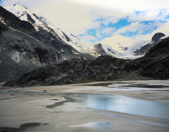 パステルツェ氷河の舌先、真正面より氷河越しに見るグロースグロックナーの壮観は、圧倒的な迫力が有ります。