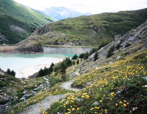 暫く歩くと人造湖に着きここから少し上って進路を左にとり谷沿いに下ってゆきます。コースは距離が有りますが、殆ど平坦な歩きやすい登山道です(但しライター川を通る時に下りと登りがある)。途中ゲスニッツ滝を右手に見て更に下ってゆくと民家が散在し始めます。長かったコースも終わりに近づいてきます。