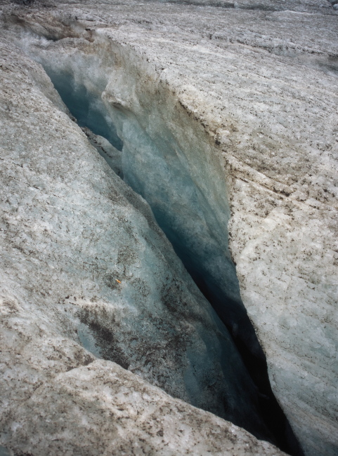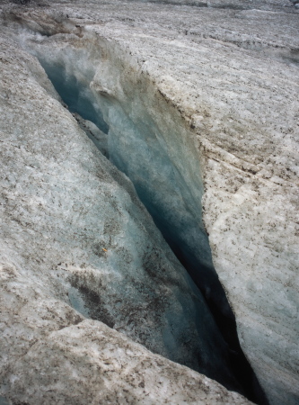 パステルツェ氷河へは、展望台よりケーブルカーで降ります。ケーブルを降りた所から真っ直ぐ下ってゆくと氷河歩きのコースとなりますが、このコースは、一般的ではありません。途中いたるところにクレバスが口を開けています。