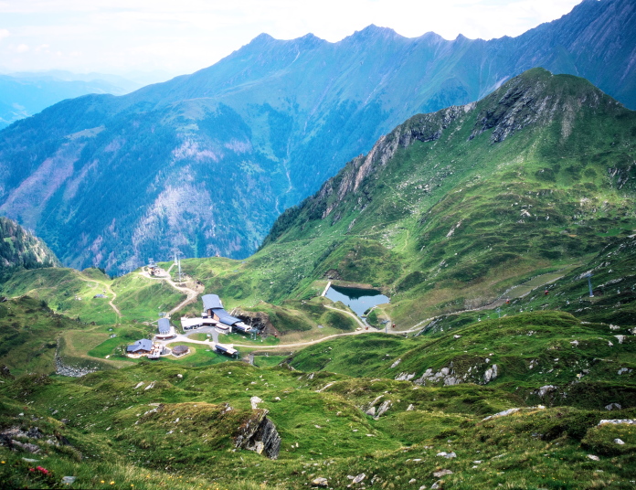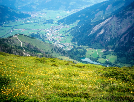 グロックナーブリックヒュッテGlocknerblick hutte(1659m)に到着すると、ロープウエー駅はもう直ぐです。Maiskogelbahnにてカプロンの麓まで降ります。後は歩いて、町の中央まで行けます。