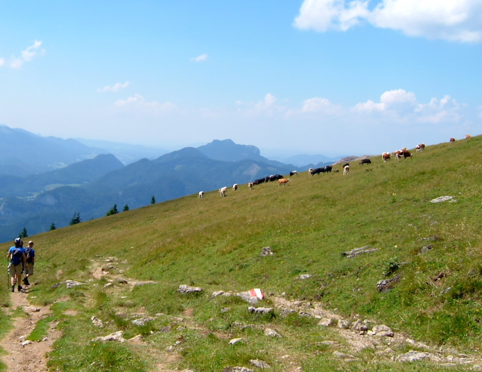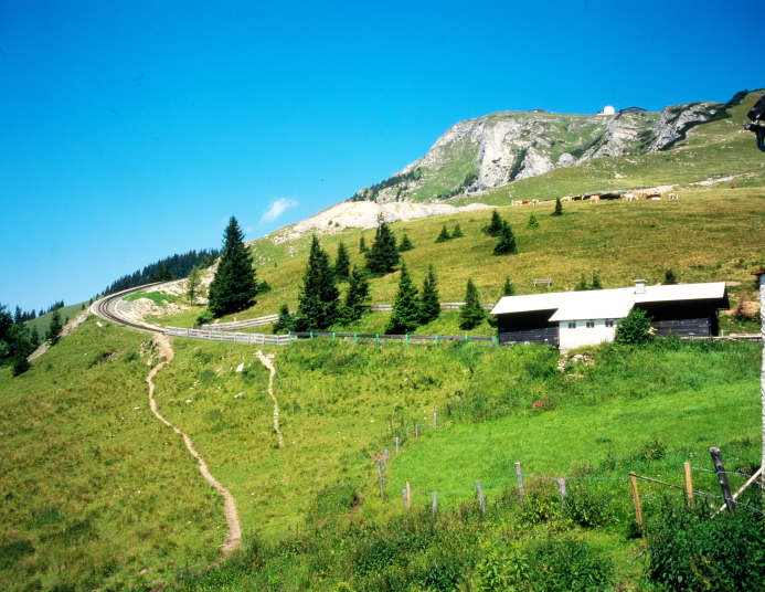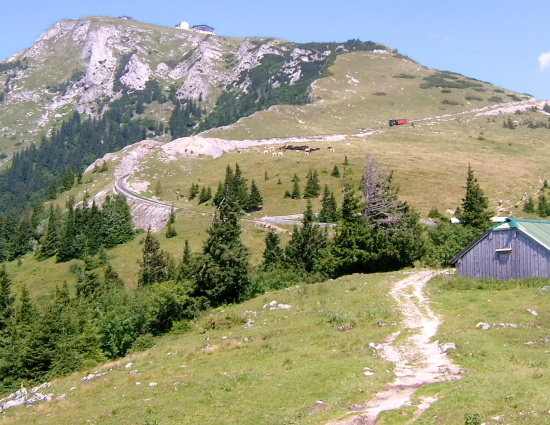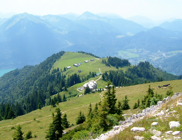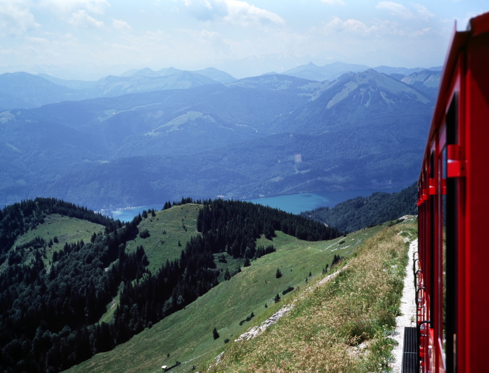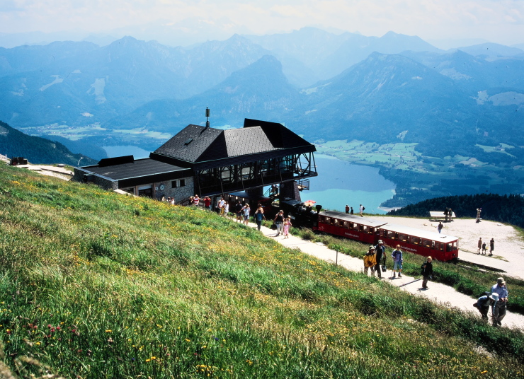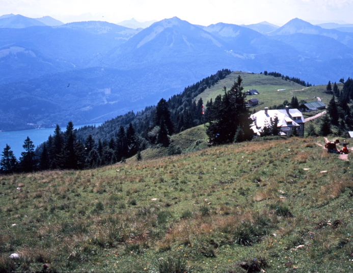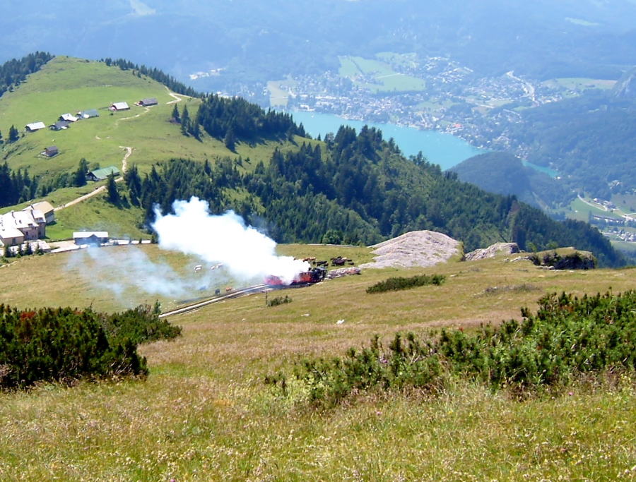 ハイキングは、この頂上より、蒸気機関車が登ってきた線路にほぼ沿うように麓の町ザンクト・ヴォルフガングへ下ってゆきます。2時間30分位の行程です。