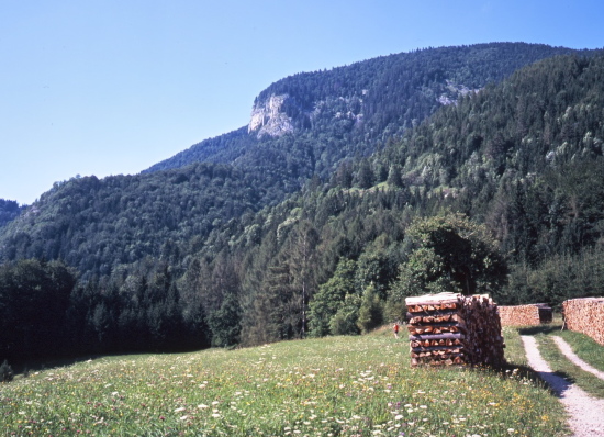 シャーフベルクSchafberg(1782m)の山頂にはヒンメルスブフォルトヒュッテHimmelspforthutteが有ります。ヒュッテの北東側からかけては断崖となっており危険防止に柵が断崖沿いに張ってあります。