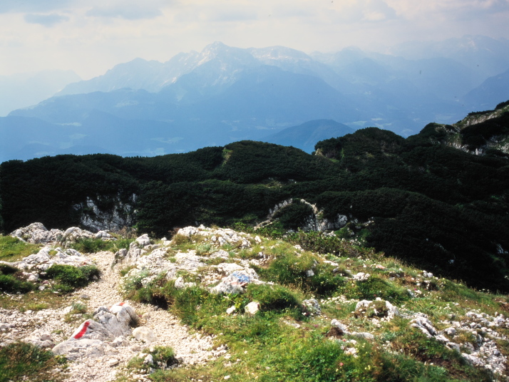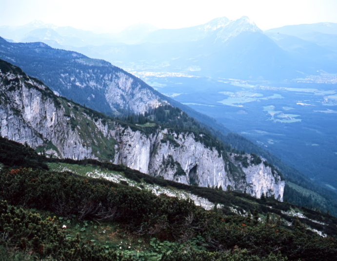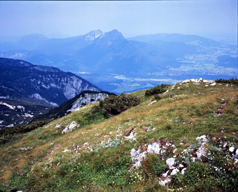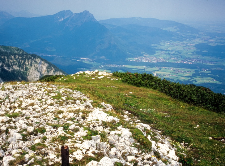 ここからは、ザルツブルグ市を一望する事が出来、南東にダッハシュタイン山群、その右にテンネン山群、ハーゲン山塊更にドイツのヴァッマン2713m等ザルツブルグの名峰が見られます。