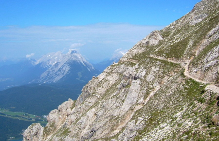 北側ドイツ国境には、ドイツとオーストリアを分けるヴェッターシュタインWettersteinwandが屏風のようにそそり立って見えます。