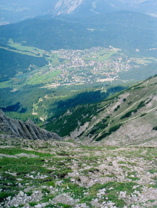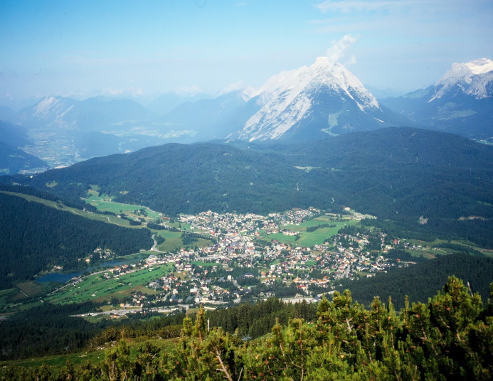 ゼーフェルトの町越しには、独立峰ホエー・ムンデHoheMunde(2662m)が存在感を見せます。