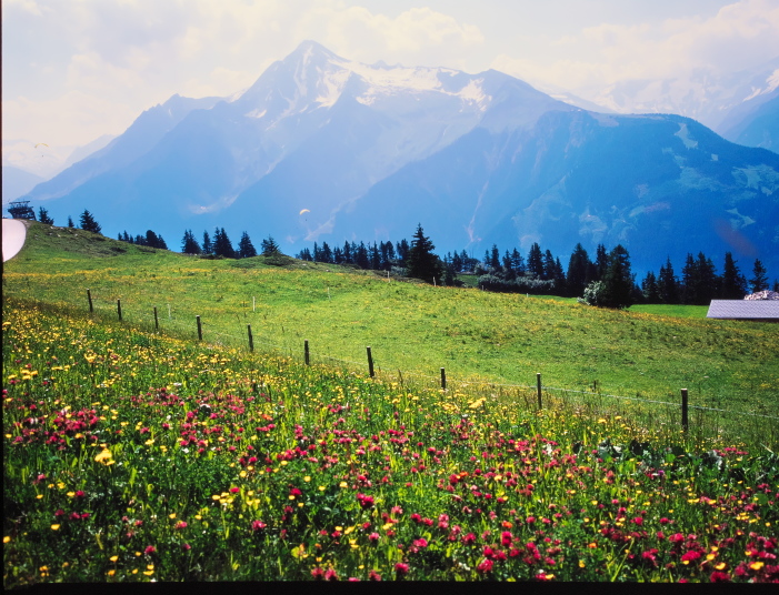 マイアーホーフェンの奥は4つの細い谷に分かれており、その先は3000m級の山が聳えるツィラーターラー・アルペンです。