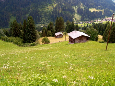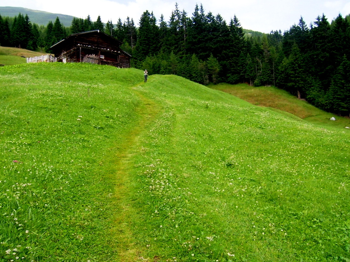 ベンケンヨッホハウスの横を通り抜けシュローフェンアルプSchrofenalmを経由しフォーデルラナースバッハVorderlanersbach(1257m)の村に降りてゆきます。