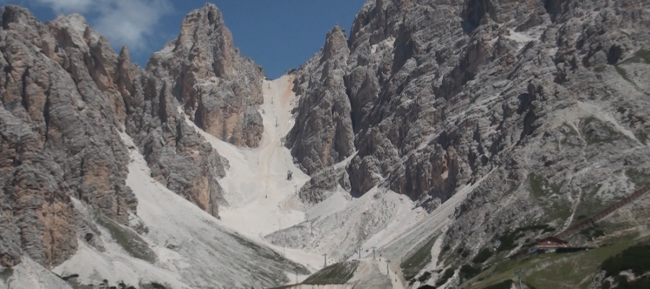 ソン・フォルカ小屋Rifugio.Son.Forcia(2218m)から、リフトで クリスタッロのリフト小屋Rifugio G.Lorenzi(2932m)を目指します。 |