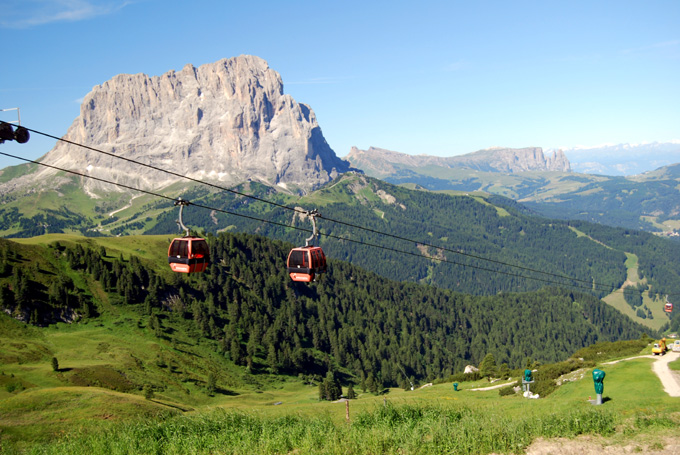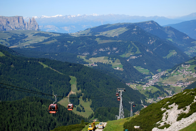 ガルデナ谷 V. Gardenaに沿って登るゴンドラリフト