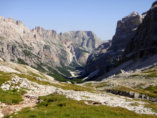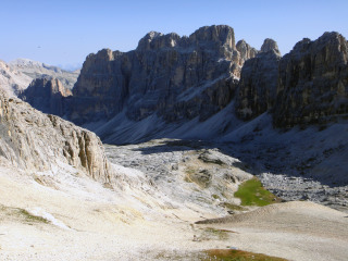 左側、奥の頂きはソラピス(Punta Sorapis 3205m)、その右端はアンテラオ(Monte Antelao 3263m)です。