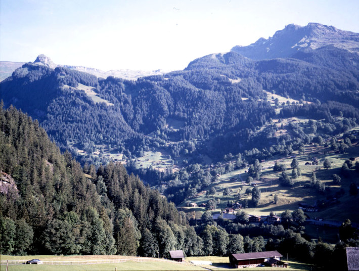 アイガーの麓です。平野の少ないスイスでは、昔より牧草地を造るため極限まで森林を開墾していったそうです。