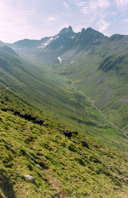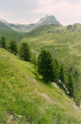 明るく開けたエンガディンの谷と穏やかな山容がマッチ。 |