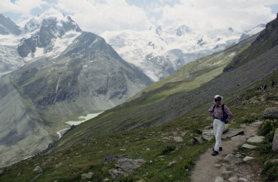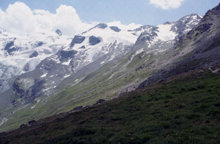 ロゼック谷(V.Roseg)のトレッキングは、ピッツ・ベルニナ(Piz Bernnina 4,049m)、 ピッツ・シエルシエン(Piz Scerscen