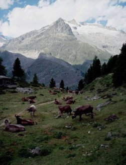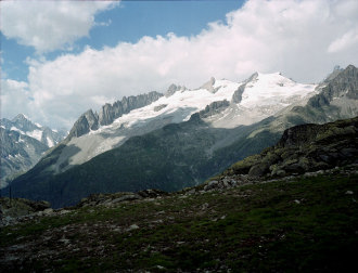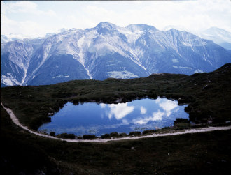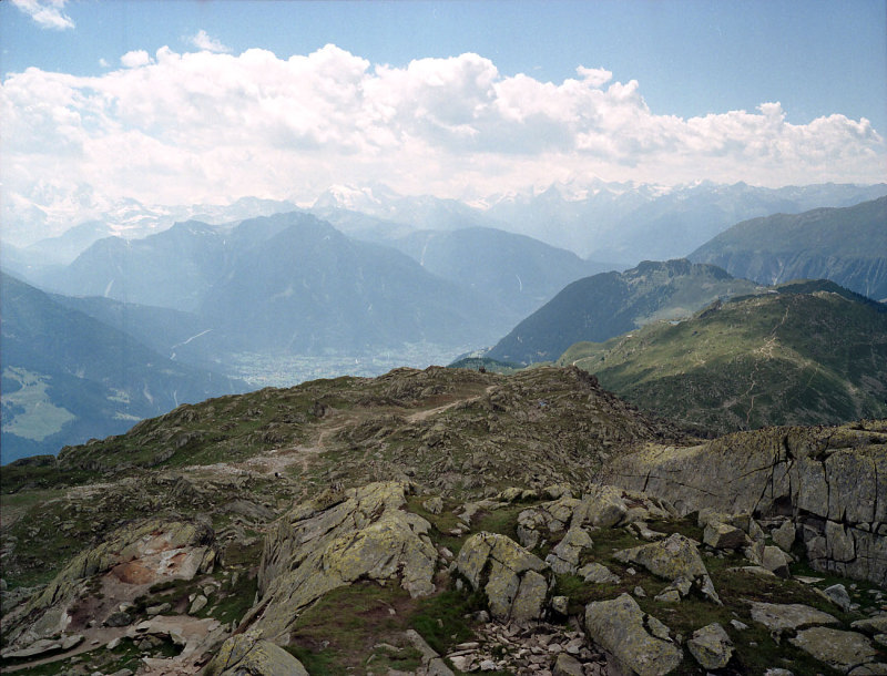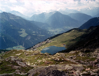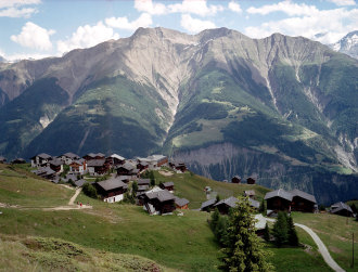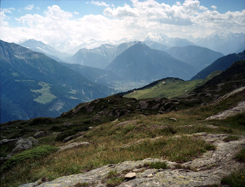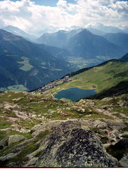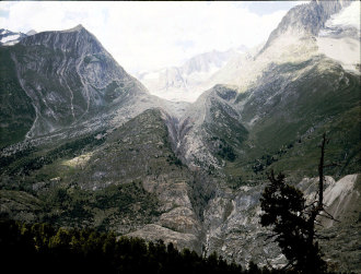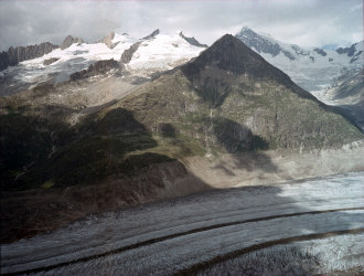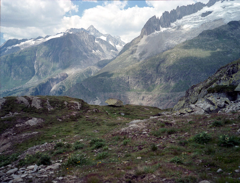 ベルナー・オーバーランドの山を見る時、一般的にはグリンデルワルト方向(北側)から望みます。アレッチ地域はその反対側(南側)に位置する地域で、ローヌ谷の上流部の尾根筋と中腹部の総称です。
