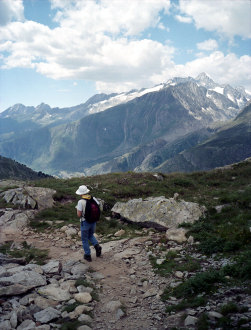 このアレッチ地域の尾根筋からは、ベルナー・オーバーランドの山々の南面を見渡すことが出来、また振り返ると逆の方向にミシャベル山群・ヴァリス山群の北面を見渡すことが出来ます。